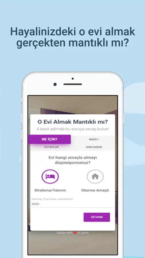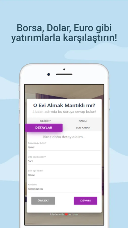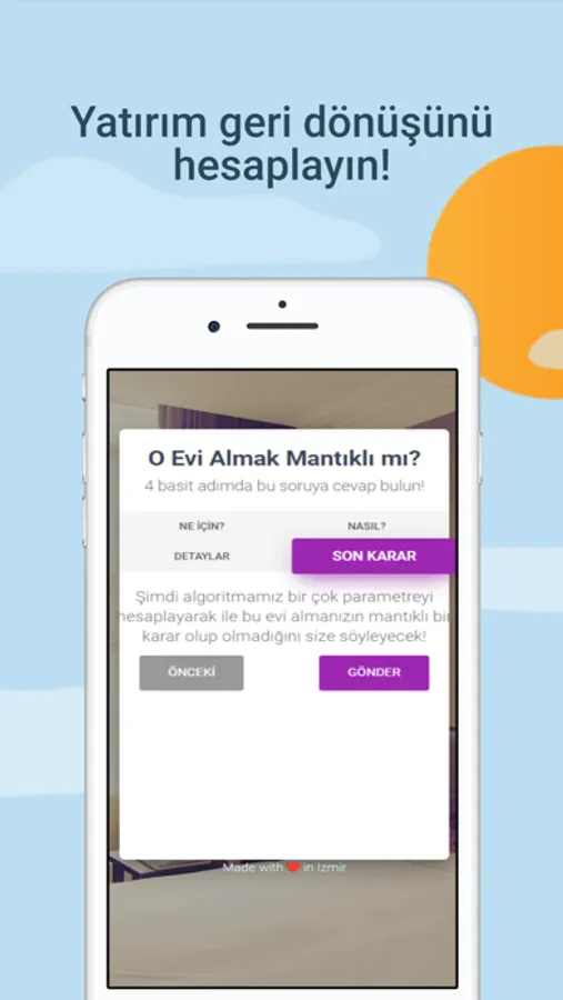 Bu uygulama, almaya karar verdiğiniz evi, diğer yatırım araçları ile karşılaştırarak size detaylı bir analiz sunar. Siz sadece almayı düşündüğünüz ya da almaya kara verdiğiniz eve dair bir kaç basit bilgi girersiniz ve kalan her şeyi uygulama halleder. Almayı düşündüğünüz evi geçmiş 15 seneki performansına göre: