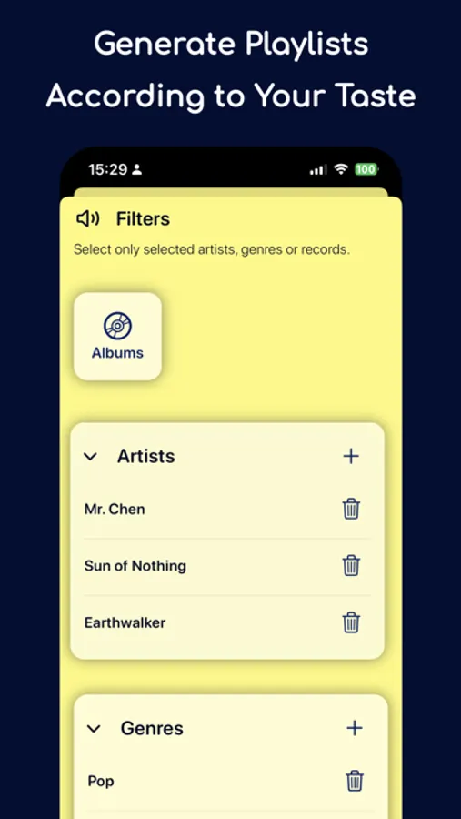- Shuffle several albums at once and put together a selection that you can play with one tap