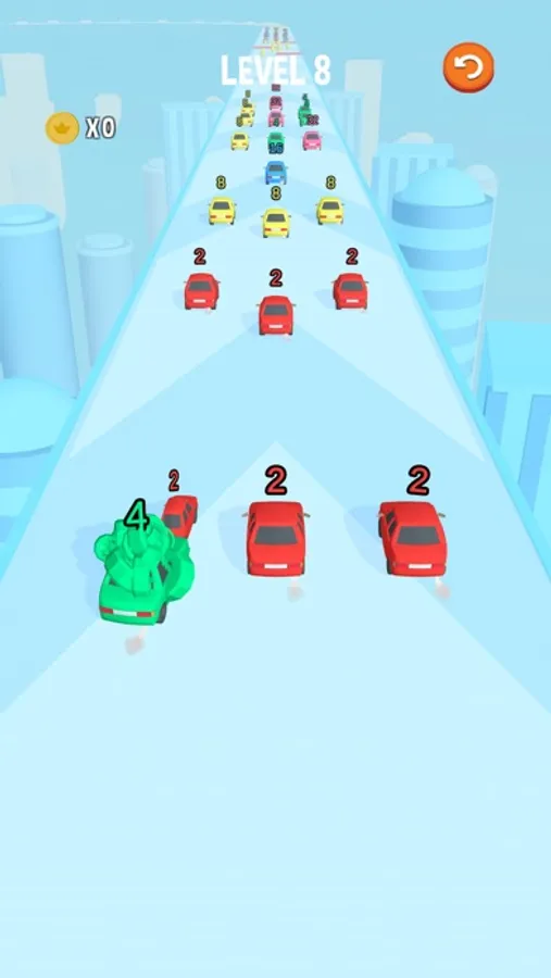 Hit the cars with the number as your car's. Merge them to get through the traffic.
