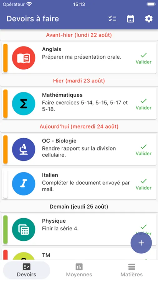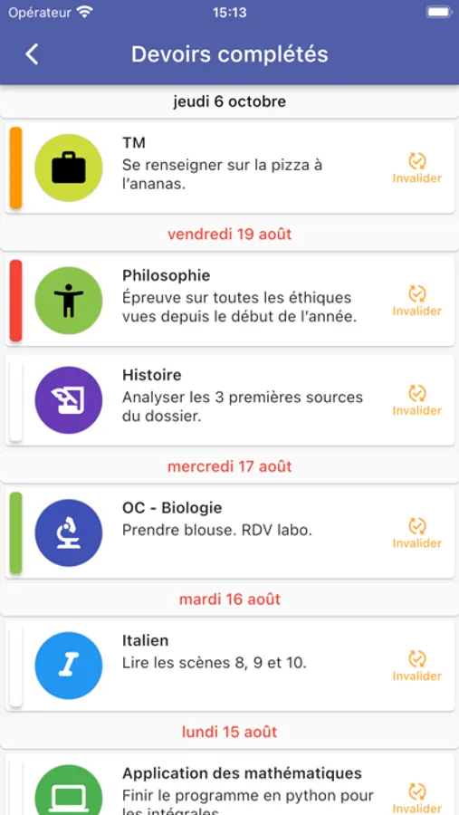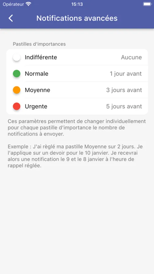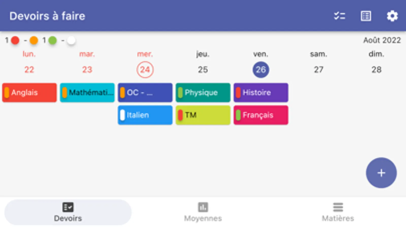 Mon Année Scolaire fournit un gestionnaire de devoirs. Il est possible d'attribuer des "importances" aux devoirs et ainsi être rappelé plus ou moins fréquemment de ces derniers à l'aide des notifications.