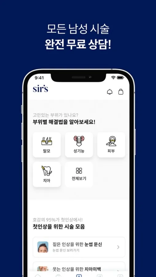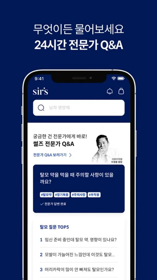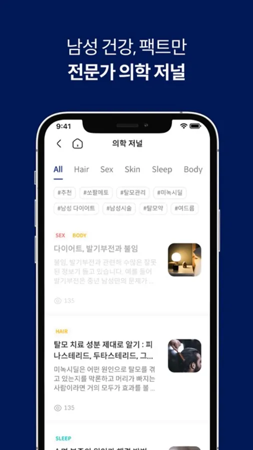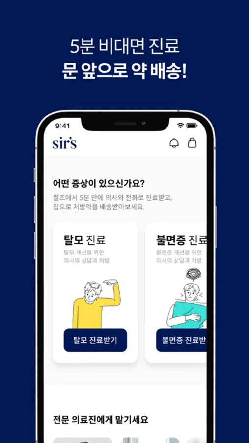 탈모 및 남성건강 케어를 포함한 남성건강을 책임집니다. 비대면 진료 및 약배송, 전문가 Q&A, 의학저널을 한 곳에서 다 만나보세요.