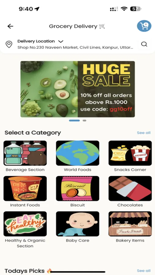 We tie up with grocery stores all around the city, so that you can sit at home and get all your items delivered to you at just the right time.