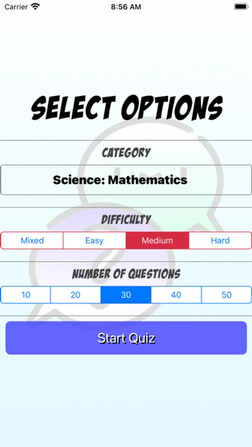 - Select Quiz Options and click Start Quiz