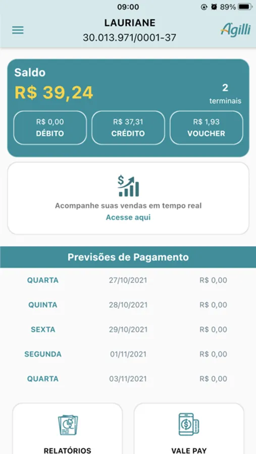 - Acompanhar suas vendas: débito, crédito e voucher, diárias, semanais e quinzenais;
