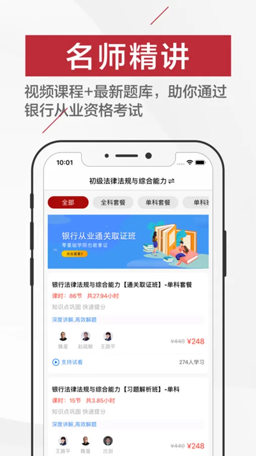 【名师精讲】视频课程,最新题库助你银行从业资格考试;
