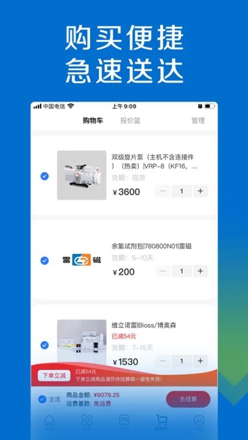 【海量商品】主营高端试剂、通用试剂、分析试剂、实验耗材、安全防护、仪器设备等近10万种商品, 通过线上运营及自送物流,将节省的3%-5%的成本回馈给客户,保证产品质优价廉。