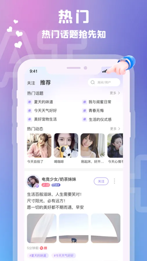 【动态广场】:随时随地分享心情和动态,让生活更充实,助你结识有趣的灵魂。