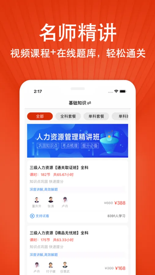 【名师精讲】视频课程+题库,助你通过人力资源管理师考试;