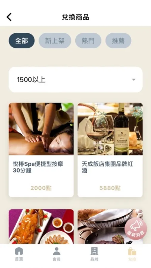 會員點數累積可進行商品兌換券、特定優惠商品兌換,並可透過旗下品牌以及餐廳進行