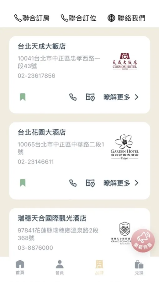 提供集團各品牌之最新訊息、住宿優惠、餐飲優惠與會員專屬活動。