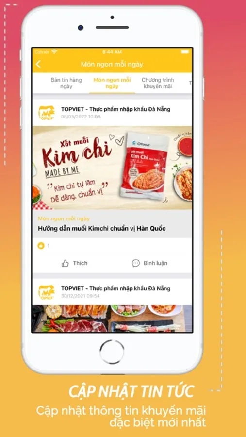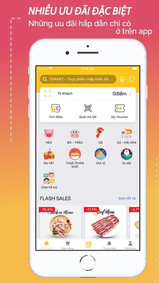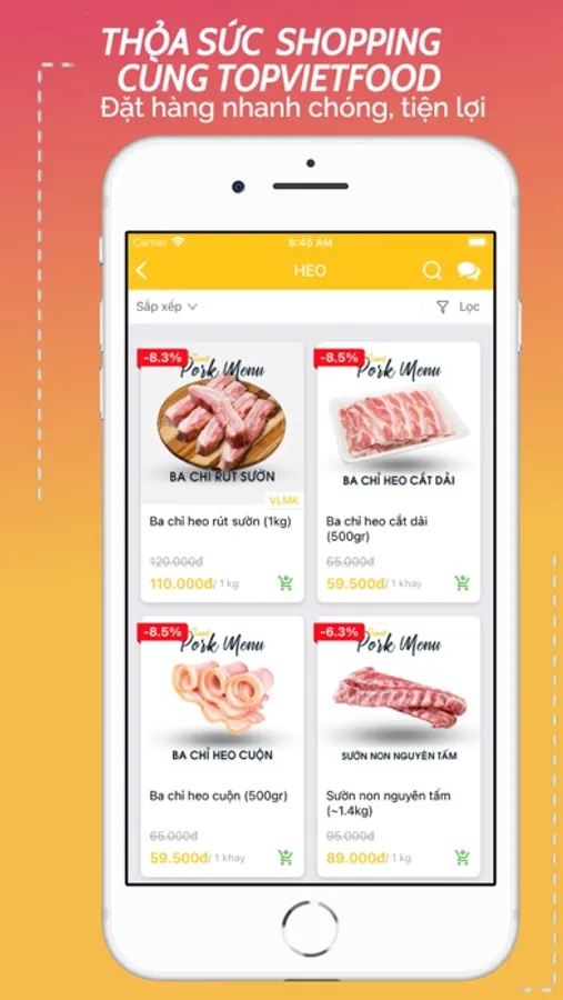 TopvietFood là ứng dụng cung cấp thực phẩm nhập khẩu đến tận nhà với các dòng sản phẩm thịt heo, bò, gà, cá, ăn vặt, bánh kẹo, sữa, trái cây, rau củ, gia vị...