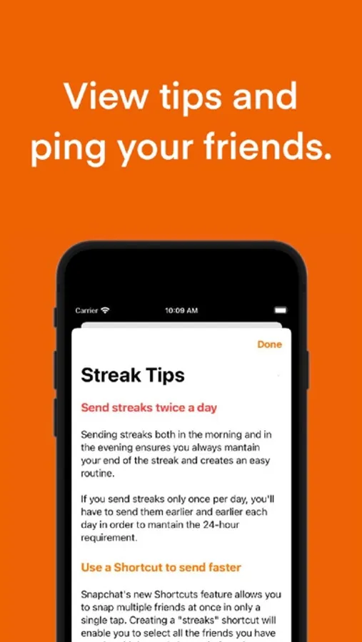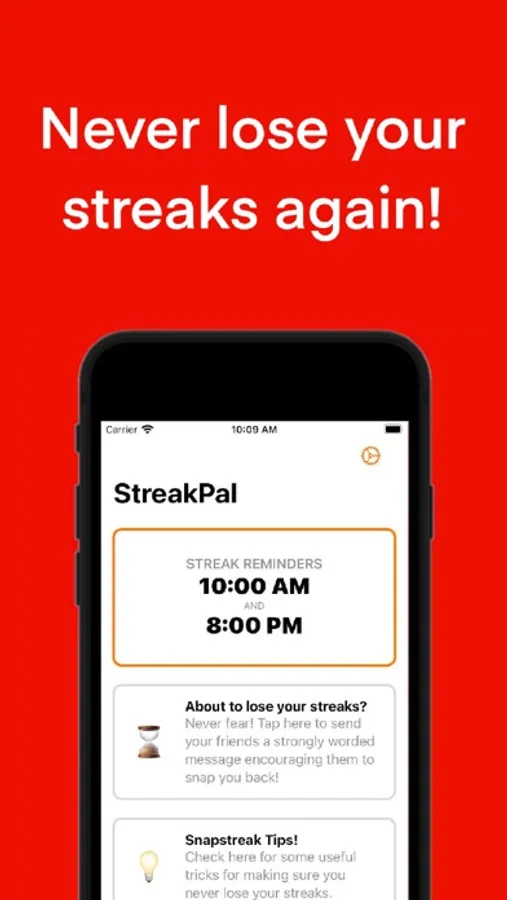 Fear no more with StreakPal's customizable streak notifications that will whisk you away to Snapchat at any time of day! And don't forget to bother your friends to send their streaks with an unnecessarily long reminder message!