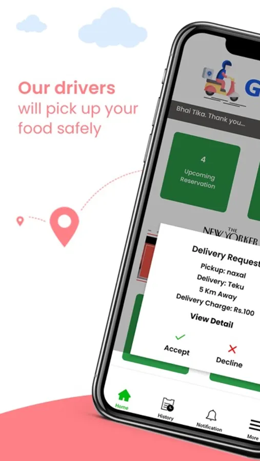 Rider gets the order request from the customer to deliver their food at doorstep and also can manage their deliveries order.