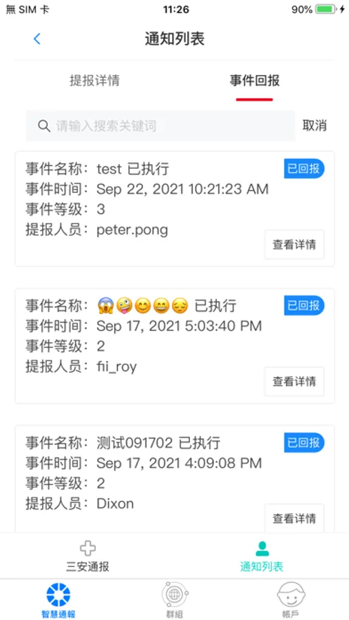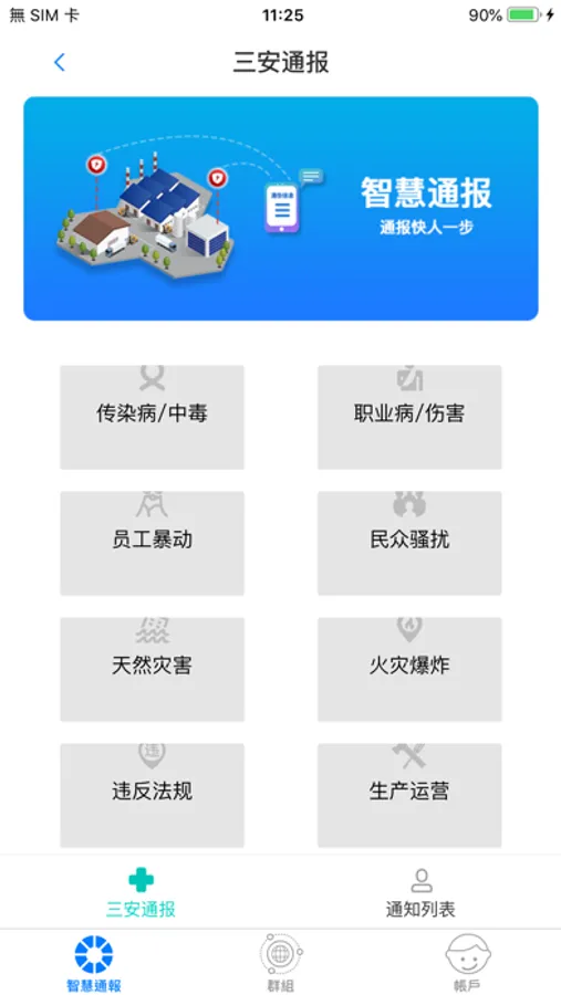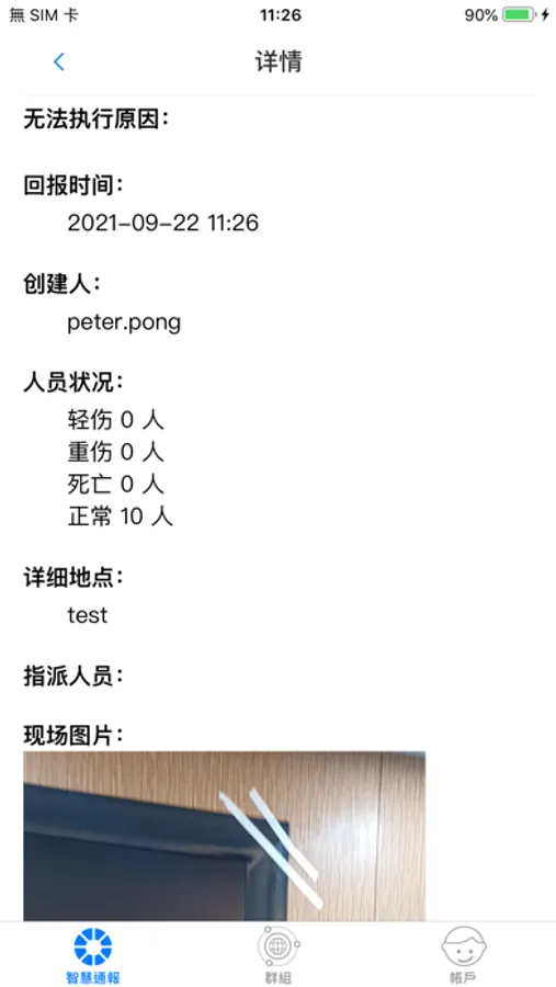 这个App是一个通报应急事件的应用程序。使用者在此App中可通报事件的类型、发生地点、及事件描述。同时,当事件被通报后,在App中可以对事件的处理进行回报,也可在群组对话视窗获得事件讯息。