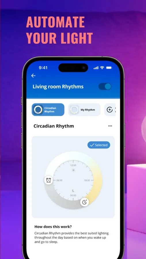 Smart lighting made simple. Organize and control your lights by groups within rooms over Wi-Fi or remotely through the cloud. Improve the way you work, feel and simply enjoy the environment you're in with our wide variety of different light modes that cover the range from fun to functional. All your settings are securely stored on the cloud and can be shared with your family, friends and even your guests if you like.