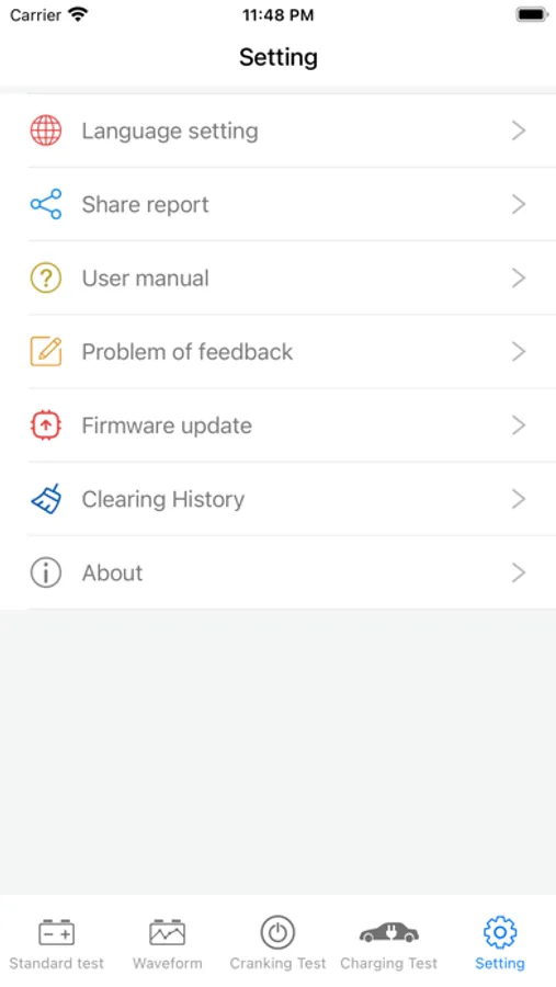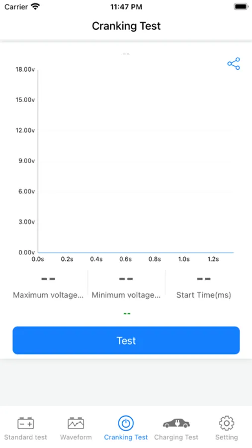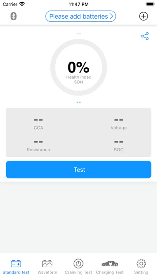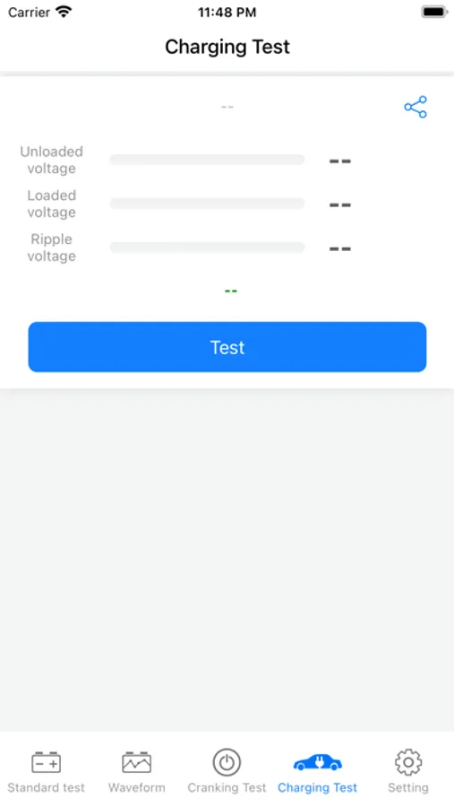 3. Support standard, fast, start, and charging tests, one-key generation of test reports, one-key sharing, etc., and accurately display battery health index, CCA, voltage (including no-load voltage, load voltage, ripple voltage), internal resistance, and battery capacity Wait