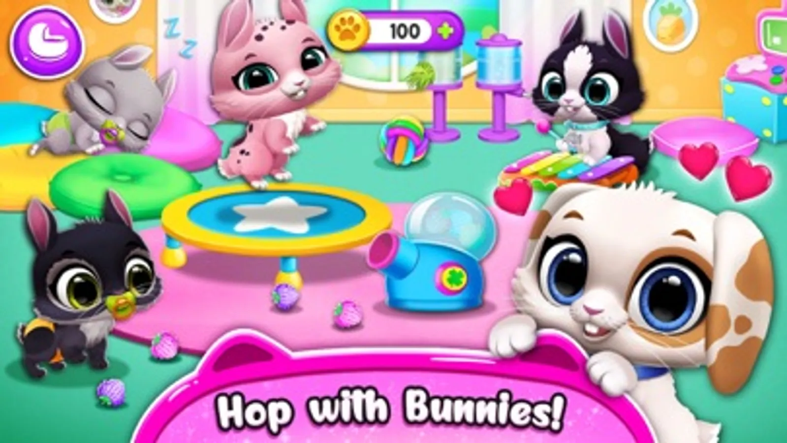 Welcome to the cute dog, kitty and rabbit pet house! Adopt a virtual animal family and watch your pets grow! Decorate their house and play fun puzzle, adventure, cooking, and dress up games!