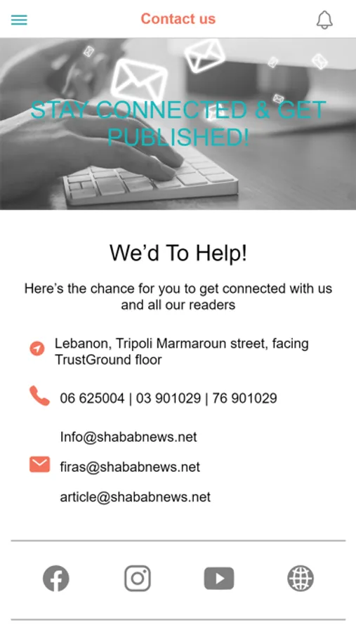 a leading educational news press and the first of its kind in Lebanon, the magazine was praised shortly after for its orientation on covering life-awareness articles and interviews with the incentive of empowering the educational system and youth in the region. With the success of Shabab News Magazine, the publication decided to take its first step towards innovation by launching its first online website, a mobile application that is now available on Youtube, Linkedin, Facebook, and Instagram platforms.