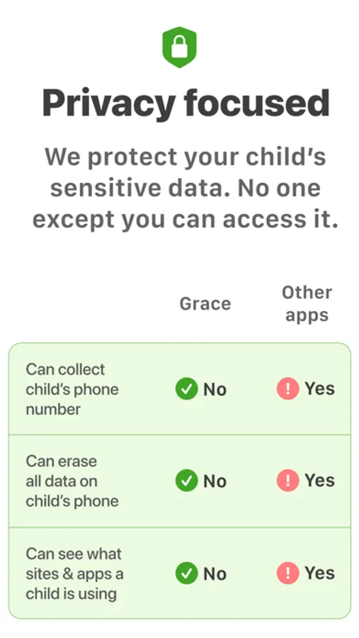 Grace is the first parental control app that doesn't require you to install MDM profiles onto your family phones. We don’t have access to your sensitive data - your data is 100% secure and safe.