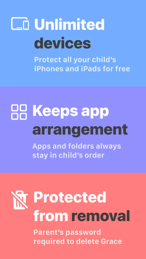 Grace lets you remotely control your children's screen time: block games & apps, sites, app installation and removal, in-app purchases, you can also set flexible screen time limits, and many more.