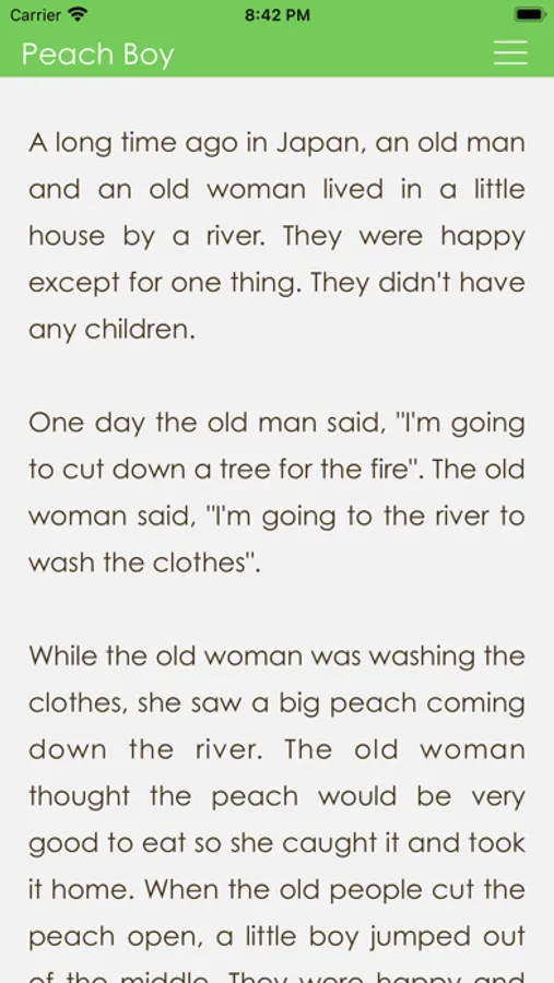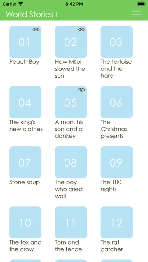 This app has over 100 short stories. Each story is written using easy words. For example, if a story is written at the 500-word level, it means the story was written using the 500 most-frequent words in English.