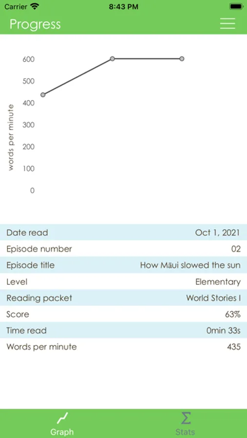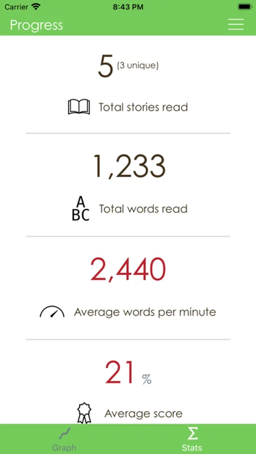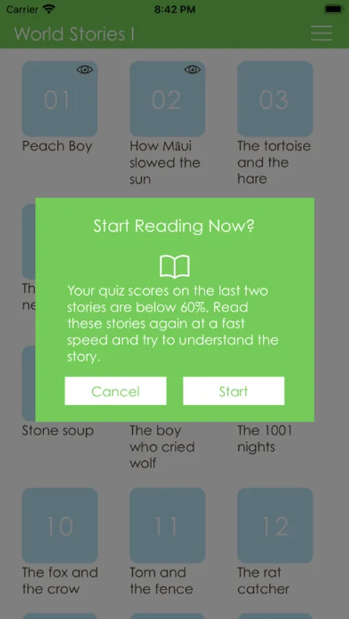 The app measures how long it takes you to read each story. To do so, it uses standard words per minute. It also checks if you are speed reading correctly by giving you feedback. This feedback helps you to continue to practicing speed reading effectively.