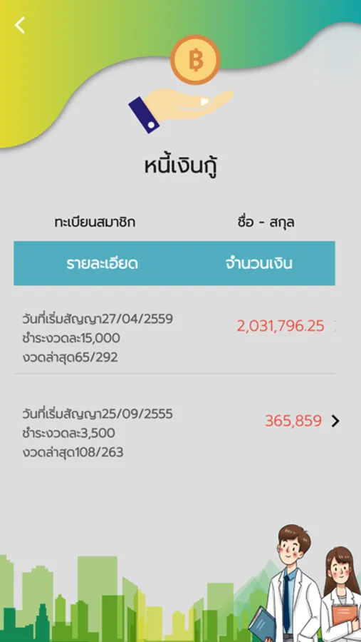- ยอดคงเหลือสินเชื่อ และรายการเคลื่อนไหวของบัญชี