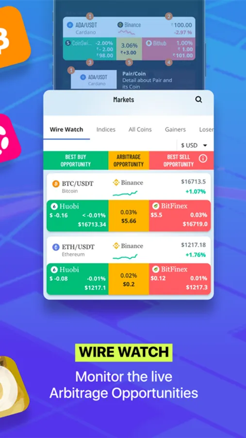 3.0 Wire: Stay ahead of the curve with the latest coin information, prices, news, and in-depth analytics. Customize your Wire Watch by selecting your preferred cryptocurrency and exchange, and monitor price discrepancies between two exchanges in real-time. With coverage of 2000+ cryptocurrencies, 70+ crypto exchanges, and 25+ news providers, 3.0 Wire keeps you well-informed.
