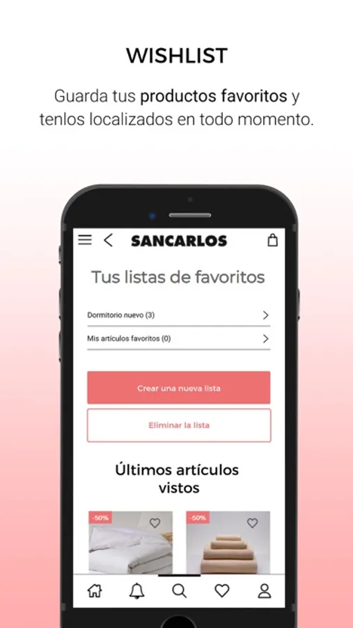 Descarga nuestra App y descubre la ropa de hogar más actual y los estilos decorativos más populares. Recibe ofertas exclusivas de la App, compra de manera más fácil, entérate el primero de todas nuestras novedades y promociones, gestiona tus pedidos y devoluciones.... Todo el mundo Sancarlos sin tener que salir de la App.