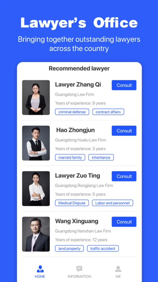 An app that provides lawyer services to facilitate communication and consultation between users and professional lawyers.