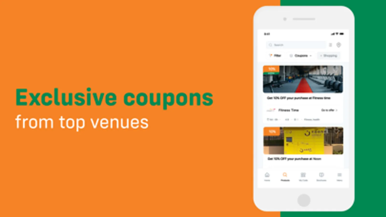 Get the best price for selected goods and services by purchasing in-app coupons from famous brands!