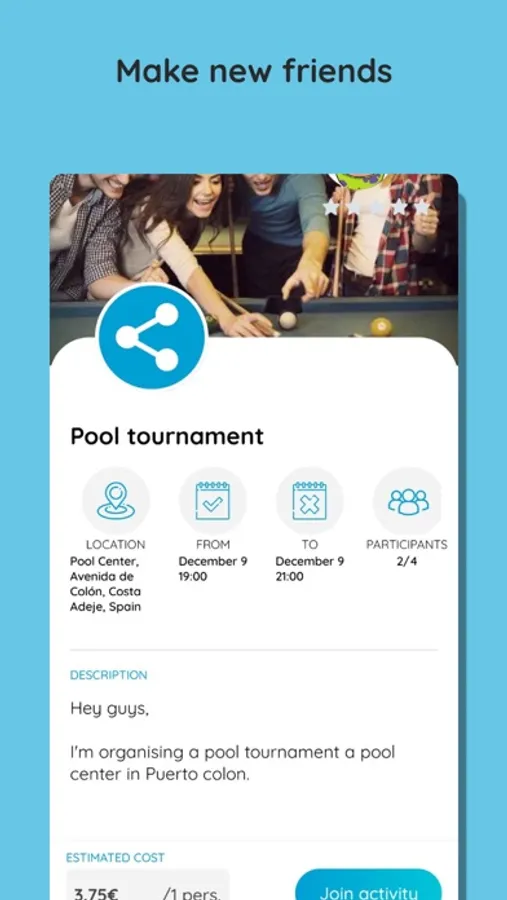 Joinrider is a platform allowing users to share activities and split the cost as well as organise free or paying events.