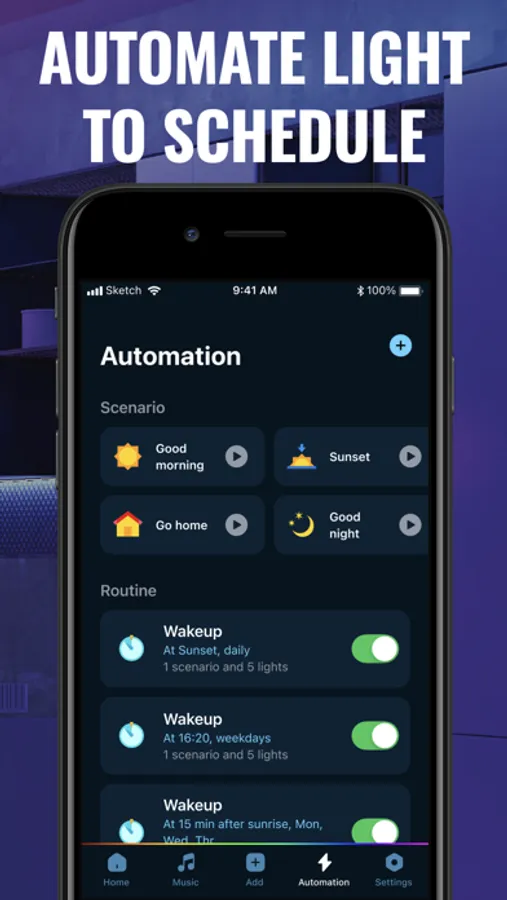 Compatibility lights: Philips Hue, LIFX, Nanoleaf, Feit Electric, Kara TP-Link, Wyze, Sengled, Daybetter, Merkury, Geeni, Cree Lighting, Vibe, Addlon, Ksipze, Nexillumi, Tenmiro, Lepro and many more