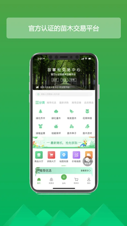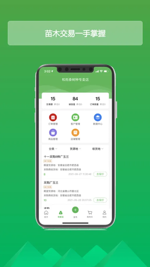 苗掌柜是为苗木种植者与苗木需求者等相关人员提供线上苗木交易的平台。平台有三种形式,手机APP、微信小程序以及电脑网页。用户可以在平台进行店铺申请、商品管理、商品挑选、商品购买、物流查看等。