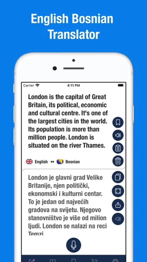 It is a translation tool that helps you break down language barriers. Excellent app for all who makes the first steps in learning Bosnian. Intuitive interface, easy navigation, quick result. Begin conversations confidently!