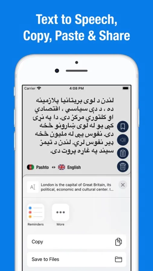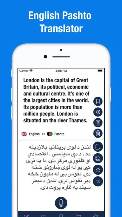 It is a translation tool that helps you break down language barriers. Excellent app for all who makes the first steps in learning Pashto. Intuitive interface, easy navigation, quick result. Begin conversations confidently!