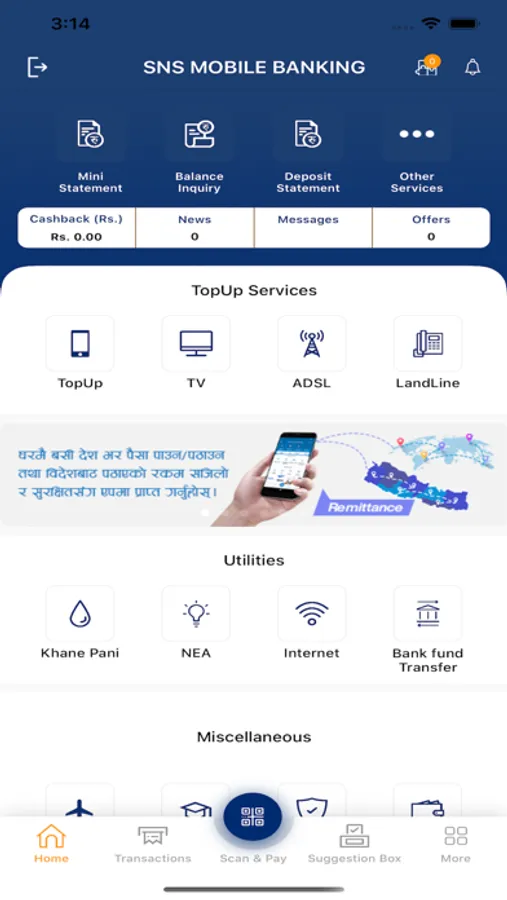 SNS Smart Savings is a mobile application developed for utility payment such as bill payment, recharge, or top-up of service providers like Nepal Telecom, Ncell, and Dish Home.