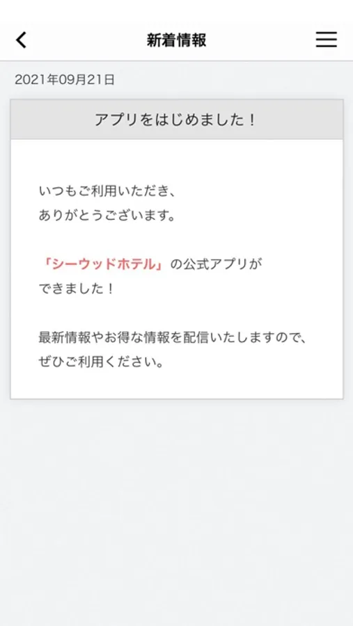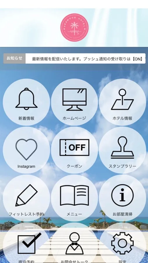 最新のお知らせはもちろん、滞在の皆様へのお役立ち情報や、アプリご利用のみなさまに合わせた情報をプッシュ通知にて配信します。