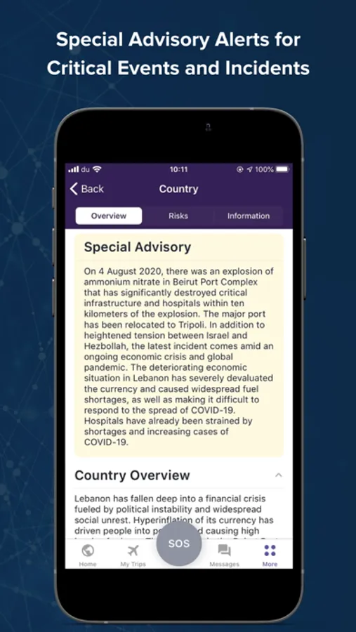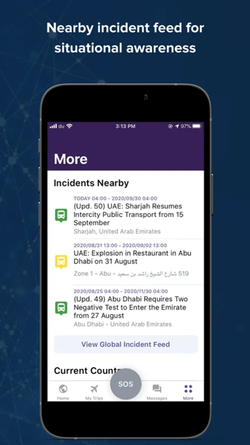 The Reach for Traveler Monitoring app provides 24/7 travel assistance to give peace of mind when traveling. Reach for Traveler provides everything you need to mitigate travel risk and prepare for each journey. The user-friendly and app provides travelers with pre-travel briefings and training, live location monitoring, access to emergency communication and response teams, and a complete event audit trail.