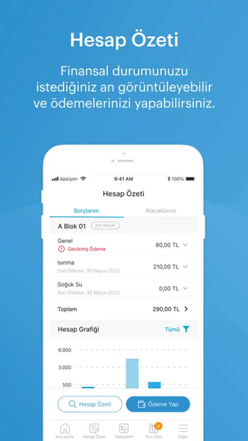-Finansal durumunuzu detayları ile görüntüleyebilir, ödeme yapabilirsiniz.