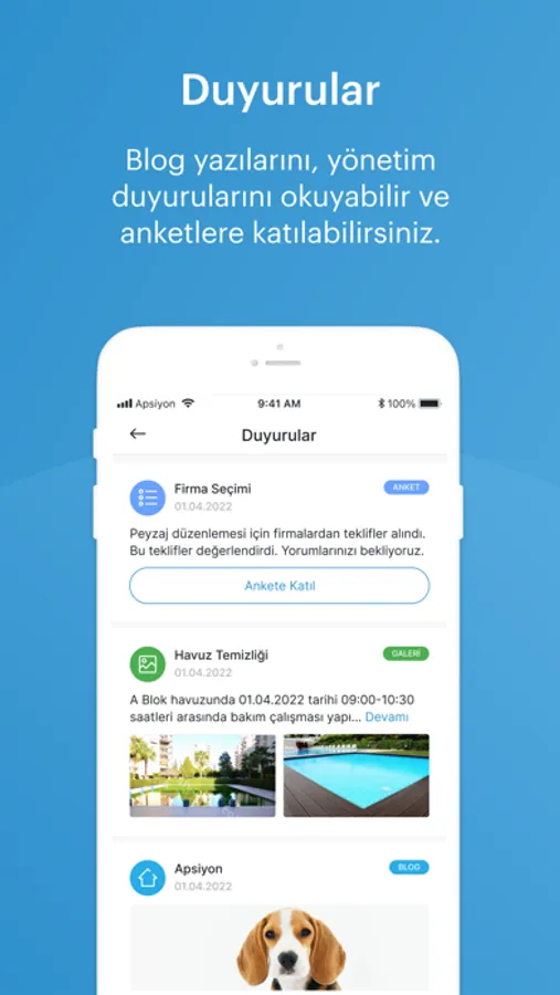 -Yönetimin yayınladıgı duyurulara, anketlere erişebilirsiniz.