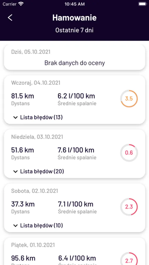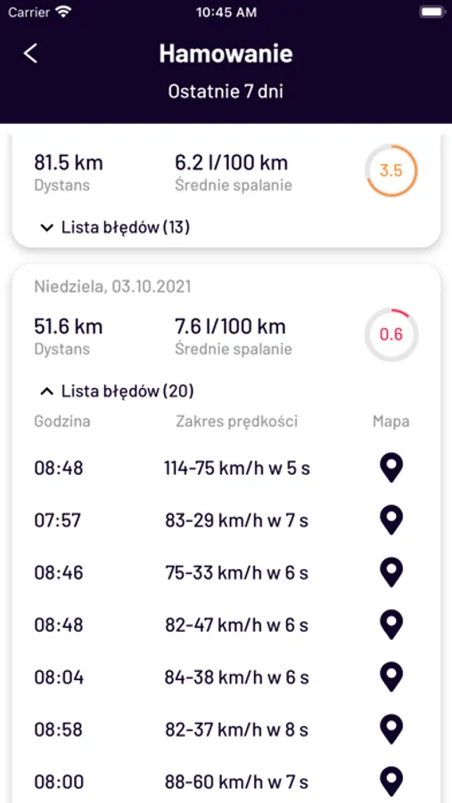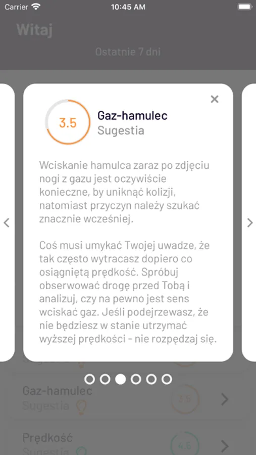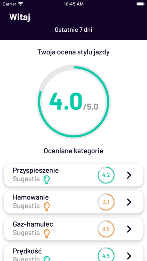 - Wyświetlanie indywidualnych sugestii dotyczących poprawy stylu jazdy,
