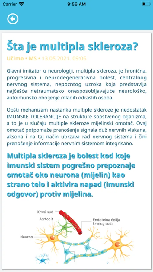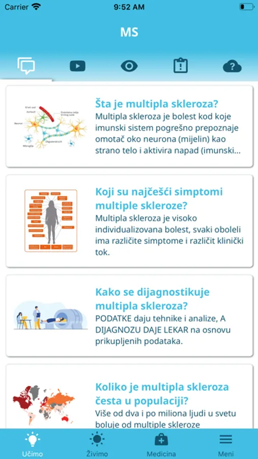 Osnovni cilj aplikacije “Moj MS svet” je da dopuni Vaše znanje o zdravlju čoveka, a ne da zameni Vašeg