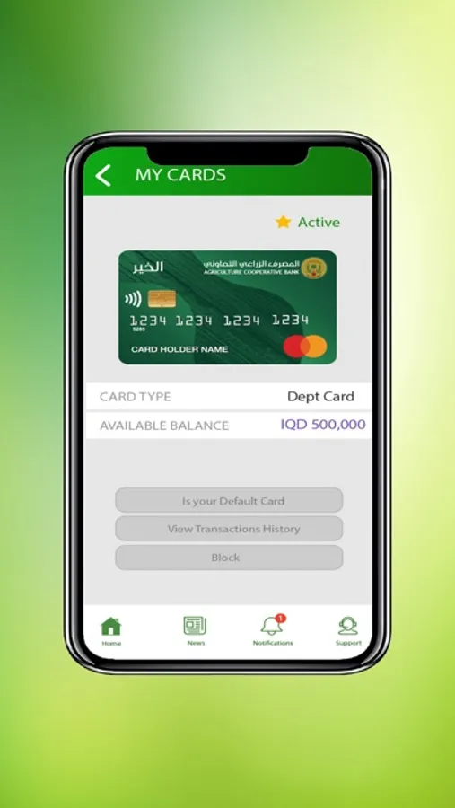 - اعرض بطاقاتك ورصيد حسابك في أي وقت