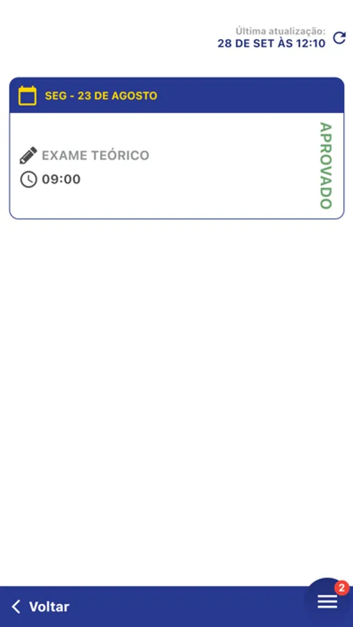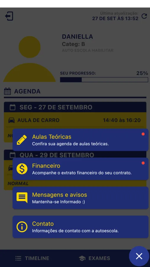 O aluno será avisado em tempo real os resultados dos exames prático e teórico.