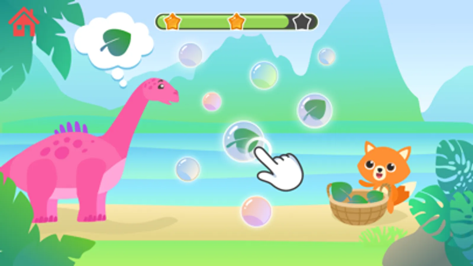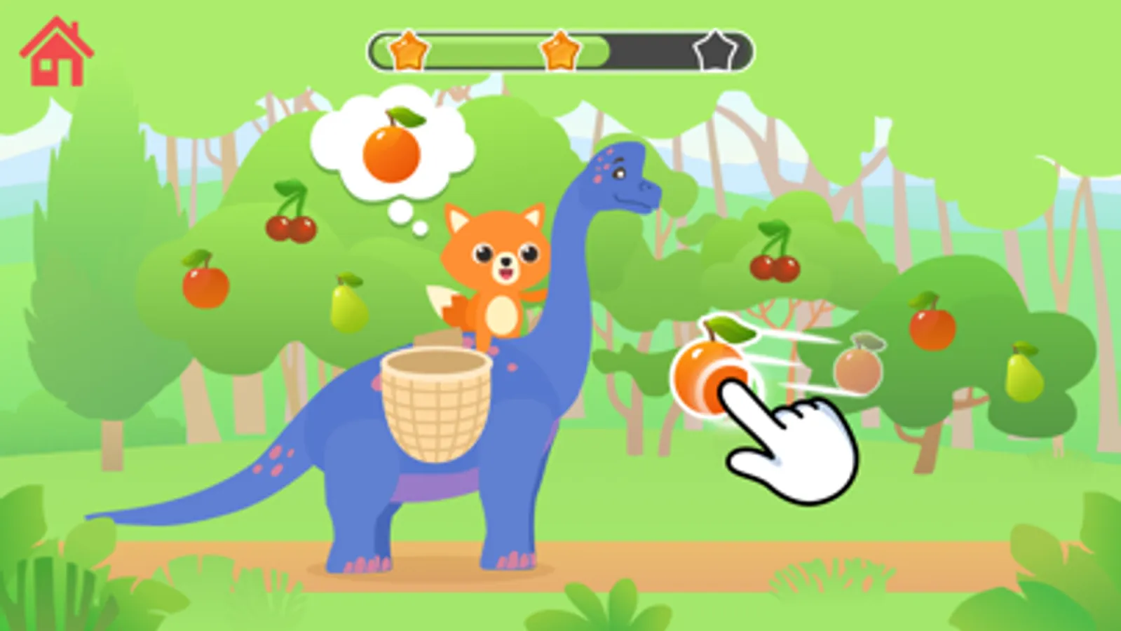 Play an educational mini-game of size distribution. Dinosaurs will teach your child to distinguish small objects from large ones and sort them into the correct baskets!