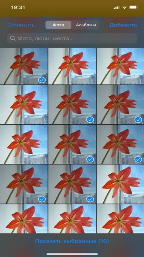 - Выберите фотографии на Вашем смартфоне в галерее
