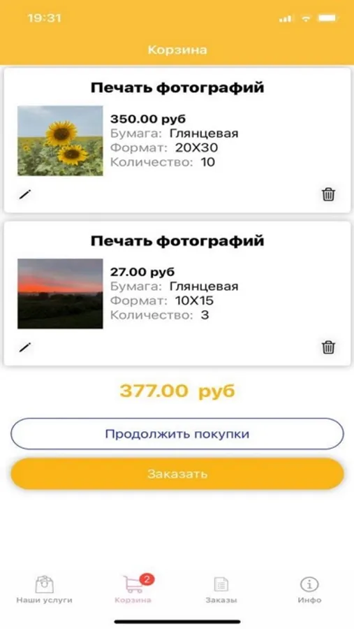 - Получите и оплатите в фотоцентре или с курьером готовый заказ