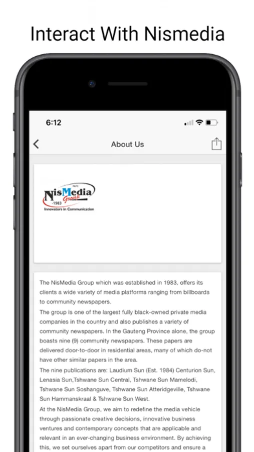 The NisMedia Group which was established in 1983, offers its clients a wide variety of media platforms ranging from billboards to community newspapers. The group is one of the largest fully black-owned private media companies in the country and also publishes a variety of community newspapers. In the Gauteng Province alone, the group boasts nine (9) community newspapers. These papers are delivered door-to-door in residential areas, many of which do not have other similar papers in the area.