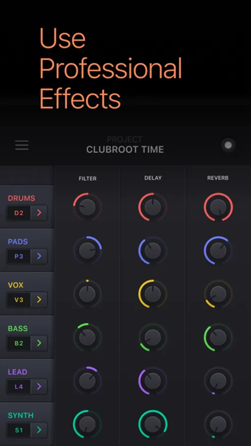 Add studio-grade effects like filter, delay and reverb. Fine-tune multi-track mixer to find the perfect balance.